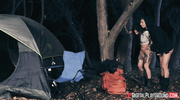 Развратная брюнеточка с большими сиськами соблазнила кучерявого парня и развела его на страстный секс прямо посреди леса. Сучка в татуировках встала на колени и дала трахнуть слюнявую глотку по самые гланды. Когда цыпочка вошла во вкус, она выпросила трах в мокрую пилотку, а потом кончила и от анального секса.