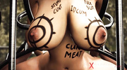 Мужчина в маске трахает двух связанных рабынь в наручниках в подвале