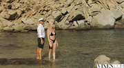 Сексапильная блонда уединилась с капитаном на берегу. Жгучая шлюшка подрочила его ствол и заглотила, пуская слюни. Он всаживал член в её волосатую киску, вертя в позах, пока она стонала. Её сиськи дрожали от толчков. Сперма брызнула на её тело. Волны шумели, а её бельё промокло. Похотливая дива упивалась оргазмом.