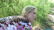 Заблудившись автостопом, блондинка умоляла незнакомца о помощи. Чувак лизал её сочную киску в кустах, пока цыпочка стонала, сжимая сиськи. Она оседлала его крепкий стояк и скакала, пока не кончила, визжа от экстаза. Сперма залила её упругие булки. Красотка виляла жопой, слизывая остатки. Тело дрожало от яростного кайфа, а она всё тёрла соски.