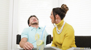 Муж притащил своего нового подчиненного к себе домой, где на него засмотрелась ненасытная дамочка. Милфа показала силиконовые сиськи и сочную попку, а уже через секунду стала получать удовольствие от кунилингуса. Хорошенько отсосав член в ответ, аппетитная красотка выпросила глубокое проникновение в вагину и мигом достигла оргазма.