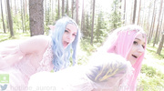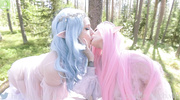 Сбежав от соседей, телочки в костюмах эльфиек устроили лесбийские игры в лесу. Они ласкали языками киски, стонали и облизывали дилдо, пихая их в глотки. Крошки долбили вагины и попки игрушками, кричали от кайфа и бурно кончили с кремпаем. Они легли на траву, напевая, довольные уединённым оргазмом.