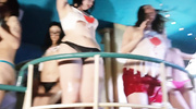 Телочки в нимнем белье отправились в клуб, где планировали порадовать зрителей и операторов. Забив на включенные камеры, цыпочки в стрингах начали крутить задницами прямо на сцене. Постепенно красотки разделись догола и засветили все прелести разом, но на мастурбацию так и не решились, как бы операторы не просили.