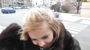 Аппетитная блондинка с большими дойками познакомилась с пикапером и получила шанс заработать деньги и бурный оргазм. Грудастая штучка послушно встала на колени и замутила глубокий и слюнявый отсос. После оральных ласк беленькая штучка отдалась во влажную пилотку прямо в туалете и потом приняла сперму в рот и на лицо.