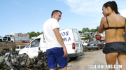 Когда обычный секс наскучил, она решилась на безумство — страстный минет и дикий трах прямо среди груды металла. Её губы жадно ласкают член, а потом она с восторгом впускает его глубоко в свою влажную киску, забывая обо всём вокруг. Финал — горячий поток наслаждения, который она с жадностью глотает, не скрывая восторга. Это видео — взрыв похоти и запретных фантазий, от которого невозможно оторваться!