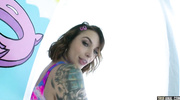 Ivy Lebelle показала огромную задницу и легко возбудила бородатого агента. Ненасытная и татуированная дамочка дала мужику порадовать себя языком, а после куни и анилингуса в ответ отсосала член. После этого ненасытная милфа отдалась в масляную попку и громко стонала, пока не кончила прямо перед камерами.