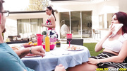 Официант подает клиентке хот-дог с членом вместо сосиски. Она заглатывает его ствол, мутя отсос в укромном уголке. После этого он нагибает её раком и вгоняет болт в киску. Телочка стонет, принимая его с жаром. Оргазм захлёстывает её, сжимая пилотку. Сперма заливает её тело, а она ликует от развратного обеда.