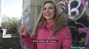 Пикапер с камерой на лбу заплатил горячей телочке круглую сумму и дал ей попробовать член на вкус. Развратная красотка прямо на улице встала на колени и отсосала член, будто последний раз в жизни. После глубокого минета Jayla De Angelis прокатилась на члене влажной пилоткой и даже дала оттрахать себя в других позах.