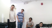 Мальчишник взрывается похотью, когда три проститутки входят в квартиру. Они дрочат и заглатывают члены парней, разжигая страсть. Вскоре телочки скачут на их стволах, лежащих на полу. Мужики долбят их киски с напором, меняя позы. Оргазмы накрывают шлюшек, сжимая пилотки. Сперма заливает их тела, а они кричат от кайфа. Похотливая оргия завершает праздник жениха.