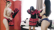 Три сексапильные штучки развели мужика на групповой секс прямо во время празднования. Телочки не стали тратить время на болтовню и сразу стали демонстрировать умения. Когда крошки хорошенько отработали ротиками, а сами насладились нежным и чувственным кунилингусом, они выпросили трах во влажные пилотки и по очереди обильно кончили.