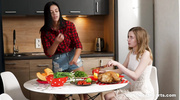 Парни не смогли найти время, чтобы заглянуть в гости к подружкам, а поэтому те решили пошалить и обильно кончить в полном одиночестве. Малышки сняли лишнюю одежду и сразу начали баловать друг друга пальчиками. После предварительных ласк крошки пустили в ход язычки и вылизывали сладкие киски, пока не заработали оргазм прямо на кухне.
