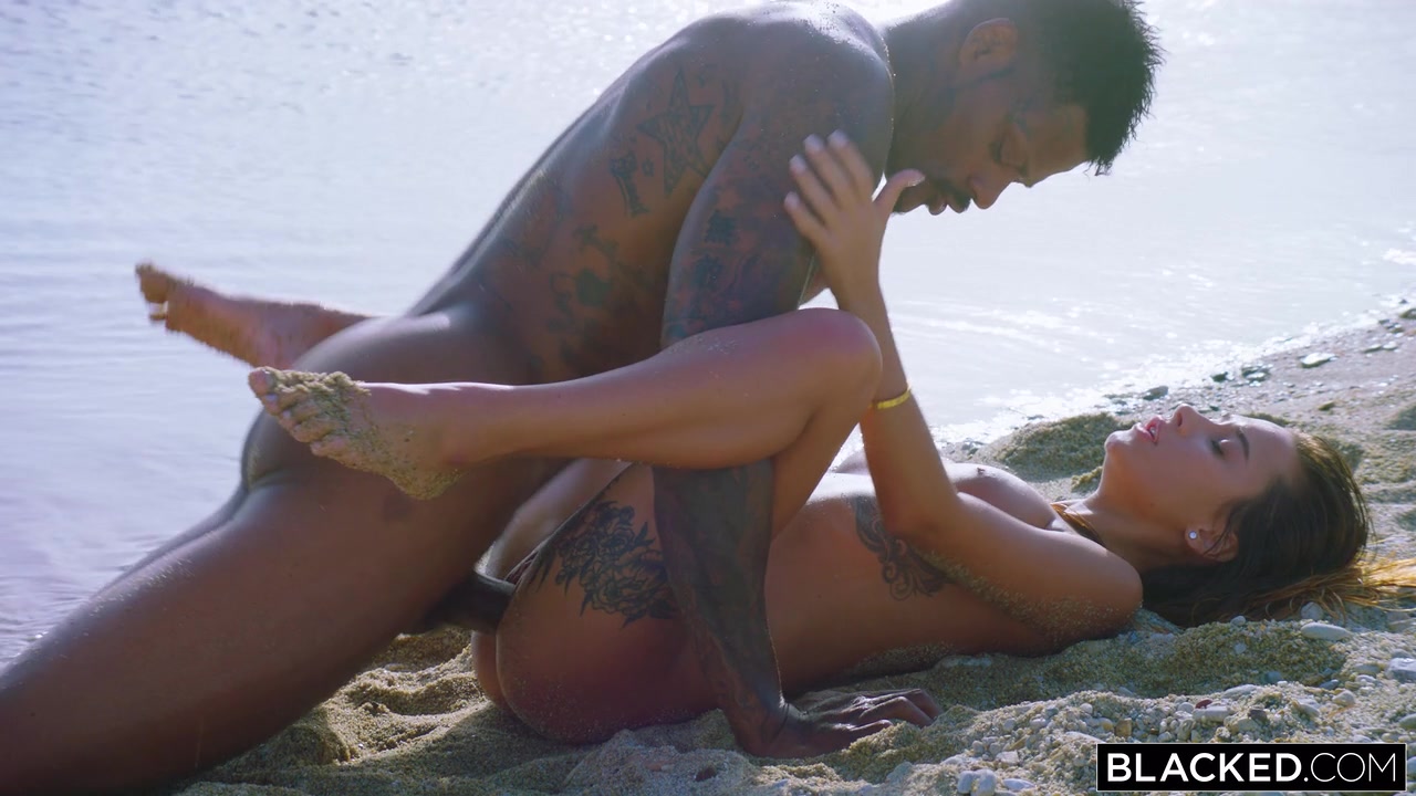 Негр уломал татуированную россиянку на секс у моря. Она жадно сосала его ствол, облизывая головку, пуская слюни. Он драл её киску в разных позах, давая пососать между толчками. Сучка визжала, оргазм захлестнул её. Сперма брызнула на губы. Кадры поймали липкие щёки и хрипы. В финале крошка слизала капли с пальцев.