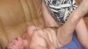 Старая и толстая россиянка разделась практически догола и в таком виде тепло встретила соседа. Потаскушка возбудила извращенца дальше некуда и сразу начала сосать член. Когда ненасытная мадам хорошенько отработала ртом и вошла во вкус, она в ответ получила чувственный куни, а уже потом достигла оргазма от долбежки во влагалище.