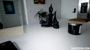 Студентка в короткой юбке показала сочную попку и небольшие сиськи. Миленькая брюнетка запросто возбудила собственного отчима и сразу начала сосать член. Когда милашка отсосала болт по всем правилам, она отодвинула трусики в сторону и позволила отыметь влажную щелку в разных позах и под конец угостилась спермой.