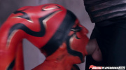 Чувак в порно-пародии "Звёздных войн" спас галактику, трахнув пришелицу. Потаскушка в инопланетном костюме заглотила его болт, стонала, теребя сиськи, и подставила киску. Шлюшка визжала, пока он долбил ее, шлепая по жопе, в разных позах. Она кончала, крича от кайфа, наслаждаясь толчками. Сперма залила ее лицо, но перед этим мужик отымел ее еще в зад.