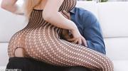 Красотка Riley Steele напялила самый откровенный наряд, который только нашла в гардеробе, чтобы не оставить негру права выбора и развести его на секс. Добившись своего, горячая блондиночка набросилась на большой член и смочила его слюнями по всем правилам. После этого ненасытная красотка дала вылизать и оттрахать киску до оргазма.