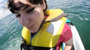 На гидроцикле посреди волн брюнетка с большой попкой дразнила парня, показав прелести в купальнике. Он вылизал её киску, пока она не застонала, держась за руль. Жеребец вонзил ствол, долбя её в воде, а её сиськи колыхались от толчков. Она кончила дважды, крича от кайфа, а он оставил сперму на её попке. Эта сучка, хихикая, слизала капли, наслаждаясь адреналином публичного секса.