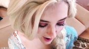 Косплей от Eva Elfie на Эльзу из Холодное Сердце. Сначала блондинка делает качественный отсос, затем принцесса становится раком и тащиться от большого члена в своей киске.