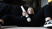 Грудастая блондинка в лосинах устраивает шоу на вебке, дразня сочными формами. Она проводит пальцами по киске через ткань, постанывая от нарастающего кайфа. Вибратор усиливает ощущения, и она теребит клитор, извиваясь от удовольствия. Её сиськи дрожат, пока оргазмы накатывают волнами. Соки пропитывают лосины, а она ускоряет ритм, доводя себя до пика. Блондинка взвыла от наслаждения, утопая в сольном экстазе перед камерой.