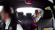 Полицейский развел грудастую студентку на секс прямо в машине. Сучка с большими дойками получила член за щеку и отсосала мужику в форме. Когда ненасытная красотка закончила с минетом и захотела большего, она отдалась во влажную вагину и наслаждалась глубоким проникновением, пока не получила оргазм, а потом даже угостилась спермой.