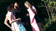 На природе крошки не устояли перед членом Эрика и заглатывали его по гланды, хлюпая от возбуждения. Они по очереди скакали на стволе, долбя свои киски, пока оргазм не накрыл их. Сперма брызнула на их попки, и сучки задрожали, крича от экстаза. Телочки рухнули на траву, хрипя от кайфа, и расслабились, наслаждаясь трахом.