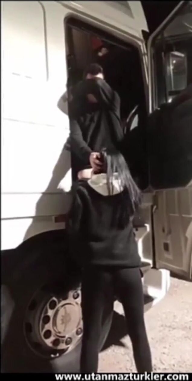 Проститутка сосет дальнобойщику прямо на трассе, стоя возле фуры