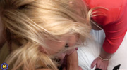 Горячая пышка в возрасте пришла в гости к молодому ухажеру и устроила незабываемое первое свидание. Толстушка с удовольствием отсосала член и довела парня до предела, особо не стараясь. После глубокого минета развратница отдалась во влагалище и кайфовала от глубокого проникновения до самого финала.