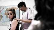 Учительница устала от работы и устроила необычное шоу сразу после уроков. Опытная дамочка заставила милую студентку отсосать своему однокурснику. Сама мадам наблюдала за происходящим со стороны и подсказывала крошке, как правильно работать ртом. После отсоса брюнеточка дала отыметь влажную пилотку, а потом кончила и от анала.