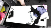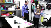 Чтобы не попасть в тюрьму из-за воровства, развратная красотка с большими сиськами отправилась в подсобку, где начала соблазнять охранника. Jackie Hoff показала прелести и заставила мужика забыть о косяке. Сучка тут же начала сосать член, а после слюнявого отсоса отдалась в розовую пилотку и трахалась на столе до самого финала.