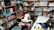 Охранник поймал молодую воровку и уломал на секс в подсобке. Она оголилась, жадно сосала его ствол, пуская слюни. Загнув раком, он драл её киску над столом, затем в миссионерке. Сучка стонала, оргазм захлестнул её. Сперма брызнула на лобок. Объектив поймал липкие волосы и хрипы. Телка прикрыла киску трусиками.